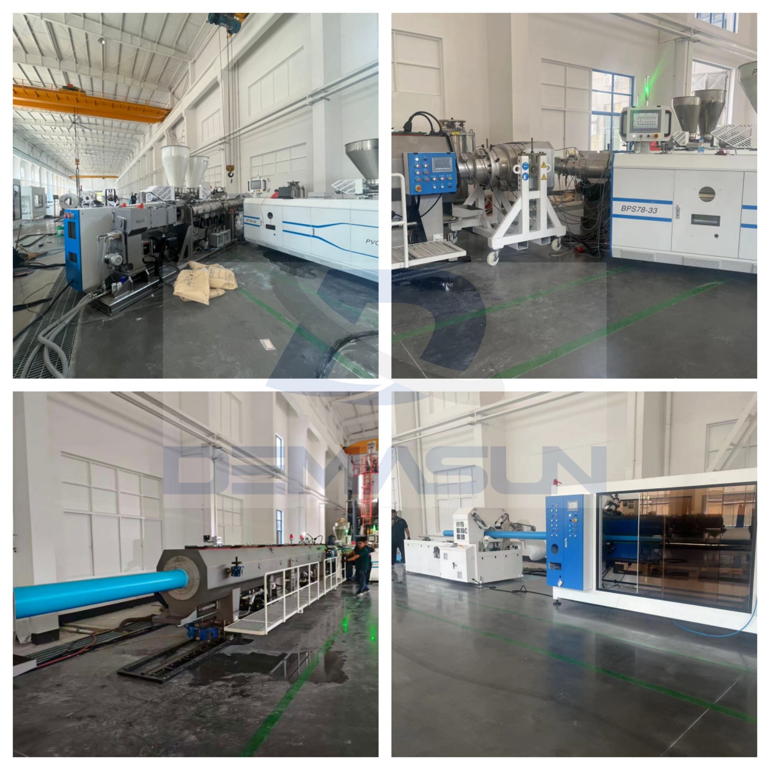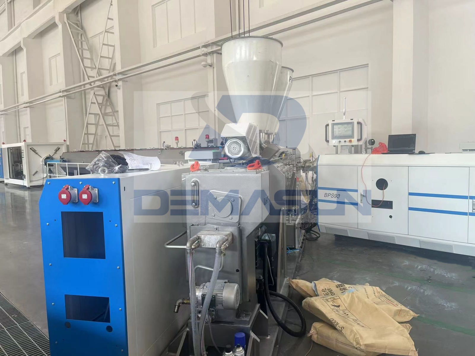 Extruders: PLC-controlled twin-screw extruder with specially designed screws and barrel.